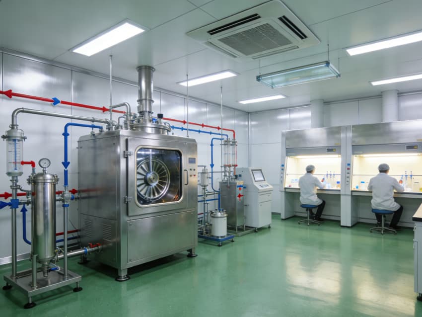 白色墻面采用食品級(jí)無菌抗菌涂層,采用無縫拼接與高精度找直工藝,陰陽(yáng)角設(shè)計(jì)成R50圓弧倒角,徹底杜絕清潔死角,潔凈度穩(wěn)定維持在Class 7級(jí)以上標(biāo)準(zhǔn)。廠房按功能科學(xué)劃分出細(xì)胞培養(yǎng)區(qū)、病毒載體構(gòu)建區(qū)、純化區(qū)、質(zhì)控區(qū)等核心區(qū)域,每個(gè)區(qū)域都配有獨(dú)立層流凈化和負(fù)壓隔離系統(tǒng),細(xì)胞培養(yǎng)區(qū)還預(yù)留了恒溫恒濕精準(zhǔn)調(diào)控接口(溫濕度誤差±0.2℃、±2%RH),各區(qū)域均設(shè)置無菌物料傳遞通道,全方位守護(hù)生物安全與生產(chǎn)合規(guī),為CGT研發(fā)生產(chǎn)筑牢堅(jiān)實(shí)基礎(chǔ)。
