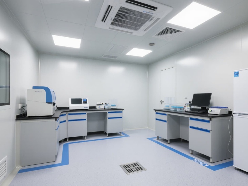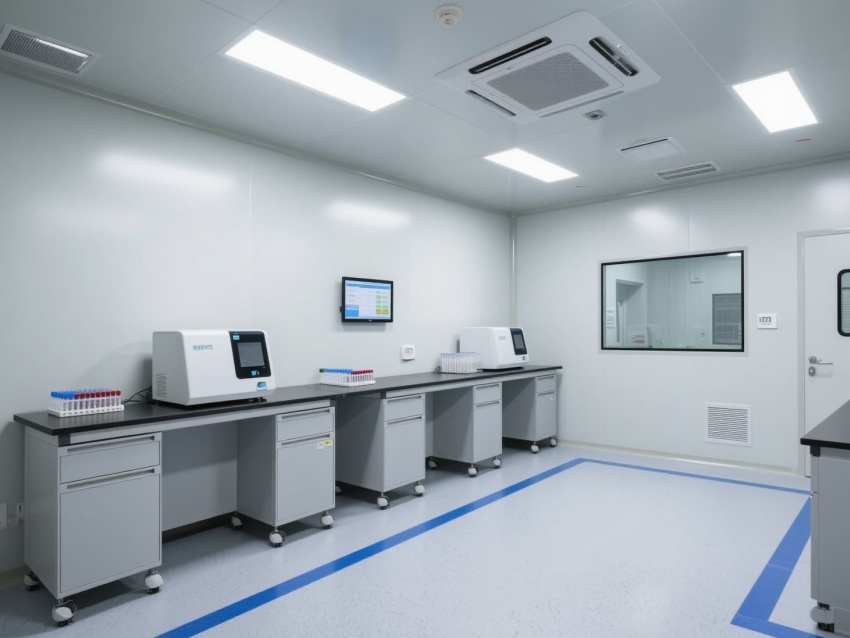 頂部高效過濾器與定向氣流系統(tǒng)維持每小時12-15次空氣置換,確保潔凈度達標。墻面嵌入式消毒裝置與紫外燈系統(tǒng),可實現(xiàn)每日全方位消殺。實驗區(qū)配備負壓通風柜與生物安全柜,臺面采用耐腐蝕環(huán)氧樹脂材質(zhì),適配PCR反應的精密操作。
