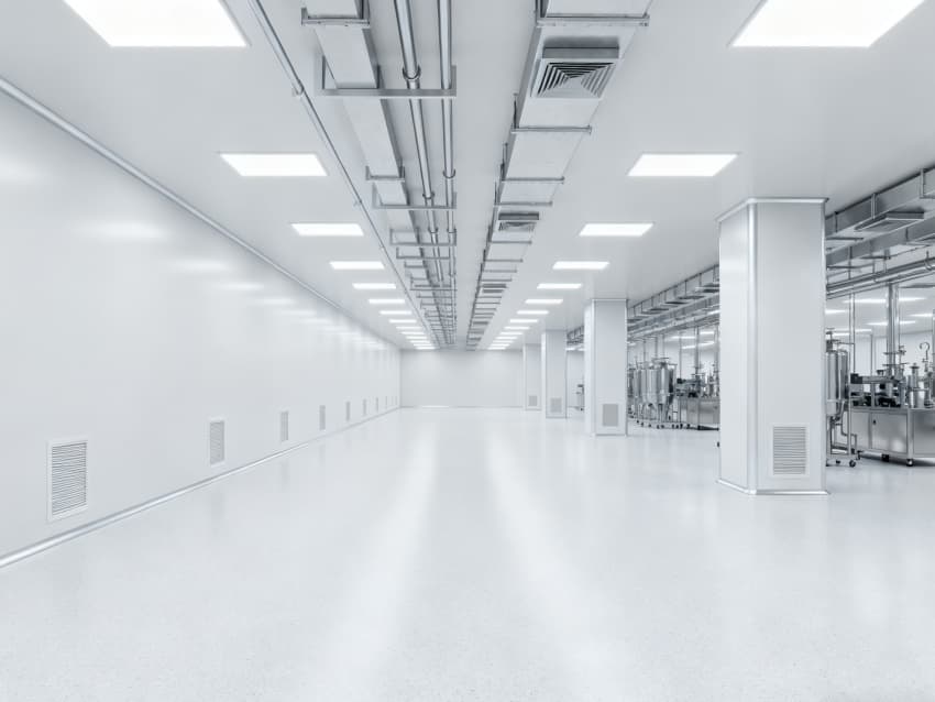 內(nèi)部6個核心生產(chǎn)車間均為無設(shè)備空曠布局,按萬級潔凈標(biāo)準(zhǔn)打造:地面鋪設(shè)無縫環(huán)氧自流平,墻面采用食品級不銹鋼墻板,陰陽角做圓弧處理,杜絕積塵死角;空間柱網(wǎng)間距均勻,預(yù)留充足設(shè)備安裝點位與運維通道,滿足后續(xù)柔性生產(chǎn)需求;頂部吊頂整合新風(fēng)系統(tǒng)與防眩光照明模塊,風(fēng)口布局對稱規(guī)整,進一步強化空間的空曠感與規(guī)整性,為生物制藥生產(chǎn)的潔凈性、安全性與可擴展性奠定堅實基礎(chǔ)。
