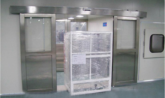 貨淋室是物料進(jìn)入潔凈室所必需的通道,它可以減少物料進(jìn)出潔凈室所帶來(lái)的污染問(wèn)題。當(dāng)物料進(jìn)入貨淋室后,高速潔凈氣流經(jīng)高效過(guò)濾器過(guò)濾后由可旋轉(zhuǎn)噴嘴從各個(gè)方向噴射至物料身上,有效而迅速清物料所攜帶的塵埃粒子。