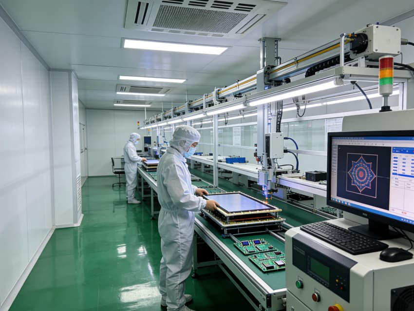 白色墻面采用工業(yè)級(jí)高潔凈涂層,推行無(wú)縫拼接工藝,陰陽(yáng)角采用圓弧倒角設(shè)計(jì),徹底消除積塵死角,保障潔凈度達(dá)標(biāo)。廠房科學(xué)劃分陣列區(qū)、成盒區(qū)、模組組裝區(qū)等核心區(qū)域,陣列區(qū)配備百級(jí)層流凈化與高精度恒溫恒濕系統(tǒng),成盒區(qū)設(shè)置無(wú)菌防護(hù)隔離裝置,各區(qū)域均預(yù)留智能生產(chǎn)設(shè)備接口與專用管線通道,全方位保障顯示器件生產(chǎn)的精準(zhǔn)性與穩(wěn)定性。