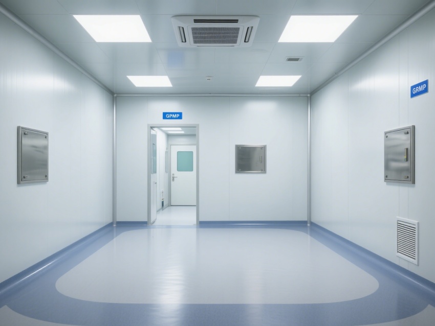 ADC醫藥研發生產車間內部采用灰色地面與白色墻壁的簡約統一風格,嚴格遵循GMP高級別潔凈規范,精準匹配抗體偶聯藥物研發生產的無菌、低污染嚴苛需求。灰色地面選用醫