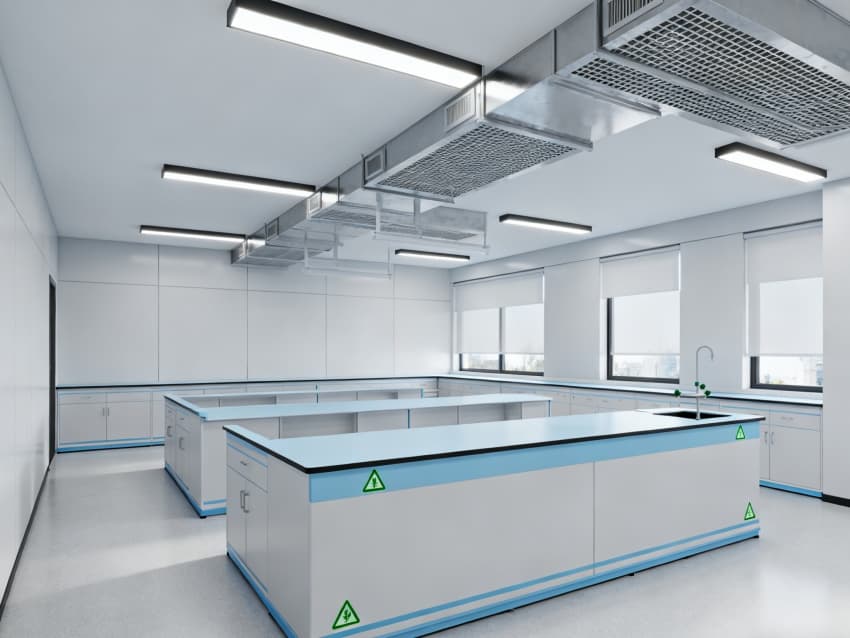 在核心操作區(qū)域,我們執(zhí)行的是高標(biāo)準(zhǔn)的潔凈要求,每立方米空氣里直徑0.5微米以上的灰塵、顆粒等雜質(zhì)不能超過(guò)352000個(gè),相當(dāng)于達(dá)到了萬(wàn)級(jí)潔凈標(biāo)準(zhǔn)(國(guó)際ISO8級(jí))。而像走廊、儲(chǔ)物間這些輔助區(qū)域,要求會(huì)稍微低一些,執(zhí)行的是十萬(wàn)級(jí)潔凈標(biāo)準(zhǔn)(國(guó)際ISO9級(jí))。采用初效-中效-高效三級(jí)空氣過(guò)濾系統(tǒng),配合側(cè)送頂回氣流設(shè)計(jì),實(shí)現(xiàn)每小時(shí)18-22次空氣置換;墻面選用耐酸堿潔凈彩鋼板,地面為防滑PVC無(wú)菌卷材,所有邊角做圓弧密封處理,減少清潔死角。室內(nèi)溫度穩(wěn)定在22±2℃,相對(duì)濕度控制在45%-55%,關(guān)鍵實(shí)驗(yàn)區(qū)維持微正壓,有效隔絕外界污染與交叉感染,既符合高校生物實(shí)驗(yàn)教學(xué)規(guī)范,也為科研數(shù)據(jù)準(zhǔn)確性提供可靠環(huán)境保障。