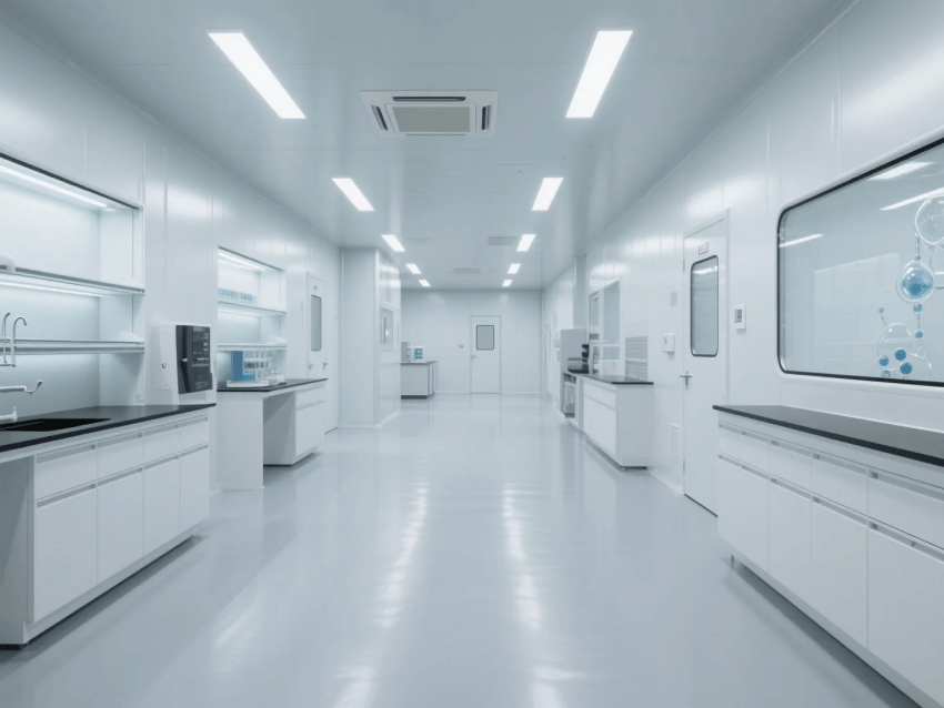 本實驗室嚴格遵循《生物安全實驗室建筑技術規(guī)范》GB50346標準,以"科技純凈"為設計理念,通過象牙白彩鋼板墻體與淺灰環(huán)氧樹脂地坪的極簡組合,打造符合P2防護要求的現(xiàn)代化研發(fā)空間。