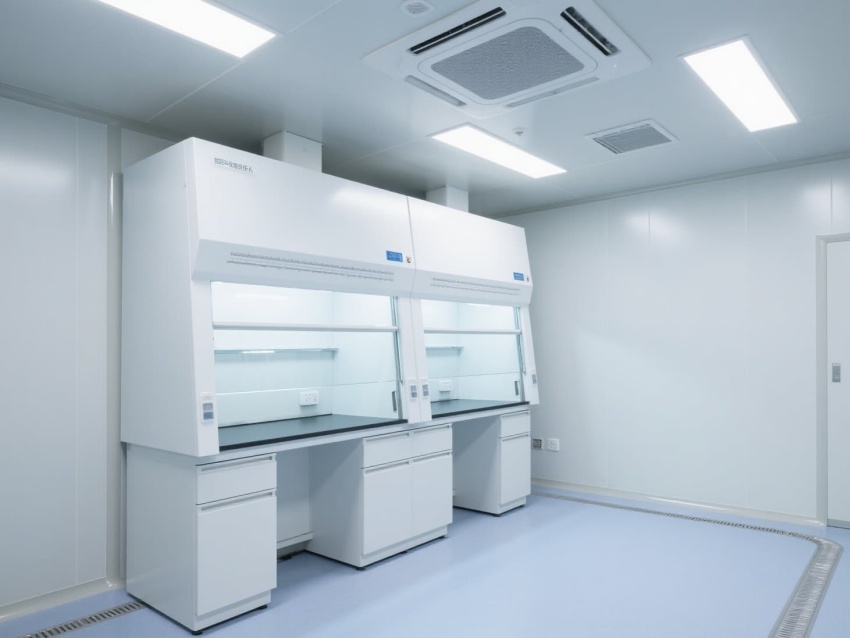 空間配備不銹鋼實驗臺基礎框架,預留耐腐蝕試劑架與電源接口,嵌入式LED燈帶提供400lux均勻照明。恒溫恒濕系統(tǒng)精準控制溫度(20-24℃)與濕度(50-60%),潔凈門窗采用雙層鋼化玻璃,兼顧密封性與觀察便利性,全方位保障實驗數(shù)據(jù)的準確性與可靠性。